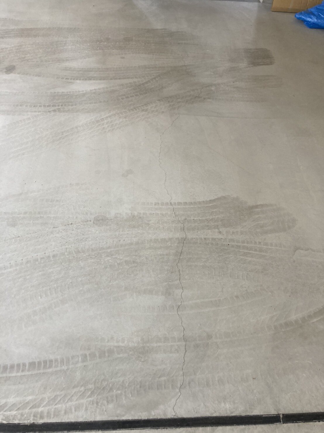 生コンオンラインの補修グループに共有されたのは「よくある」乾燥収縮が原因と見られる土間コンのひび割れ。
