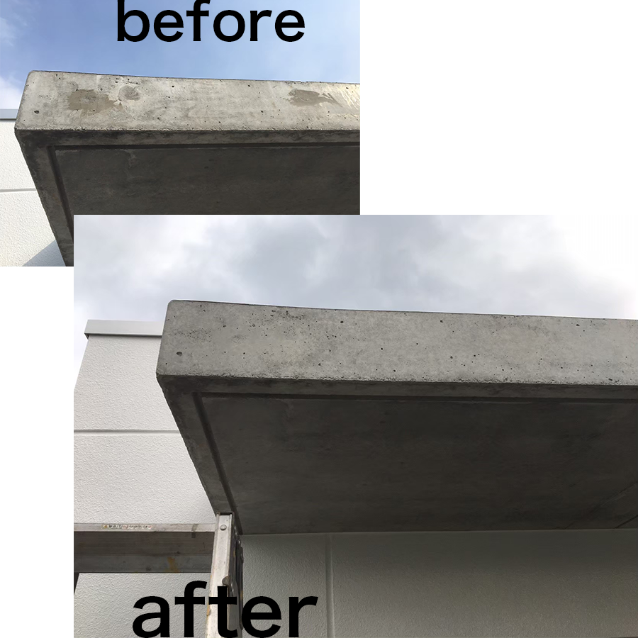 打ち放しコンクリートに特化した特殊補修「色合わせ補修」。
