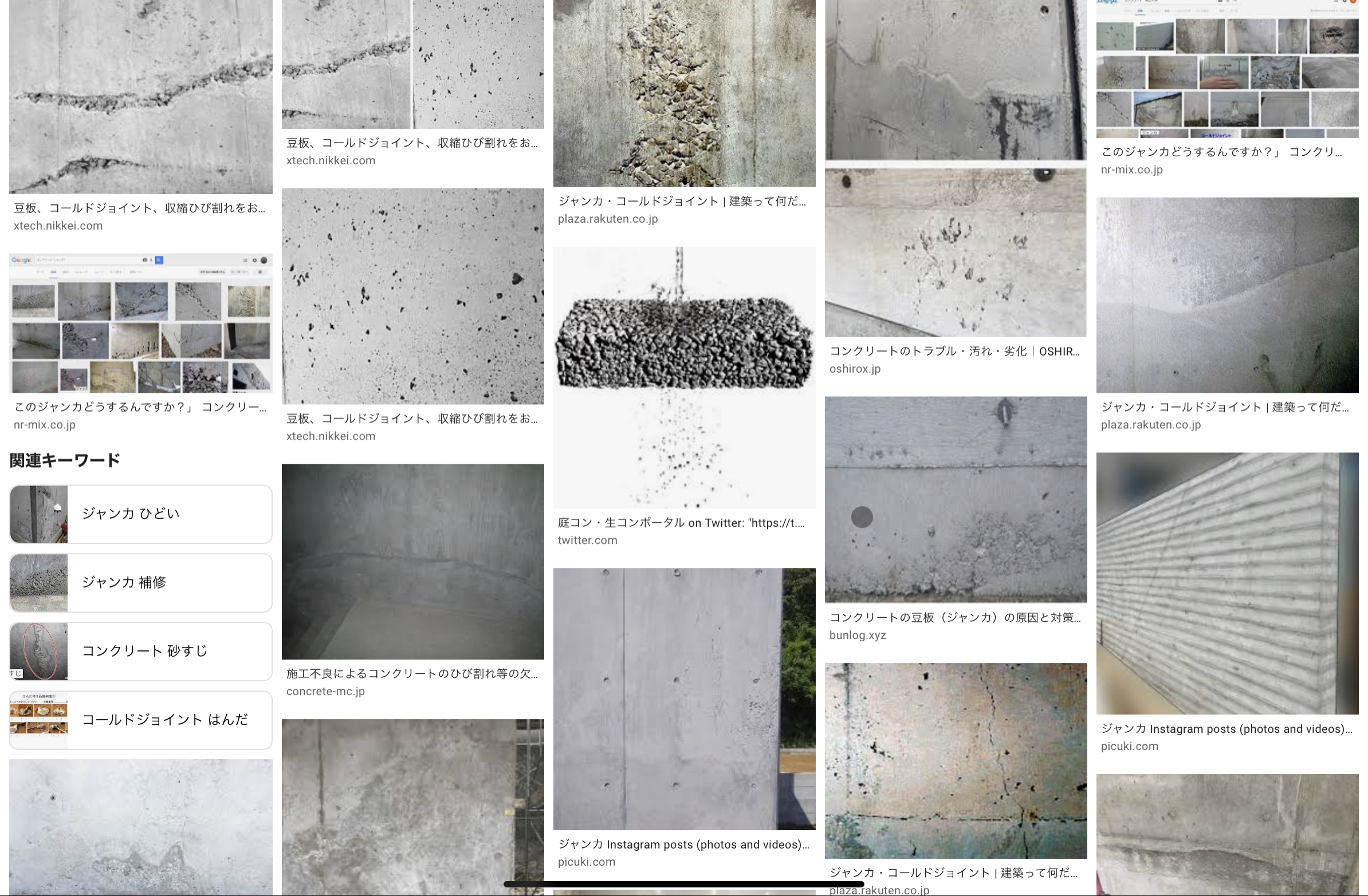 ジャンカ、豆板、ピンホール、コールドジョイント、ひび割れ。
