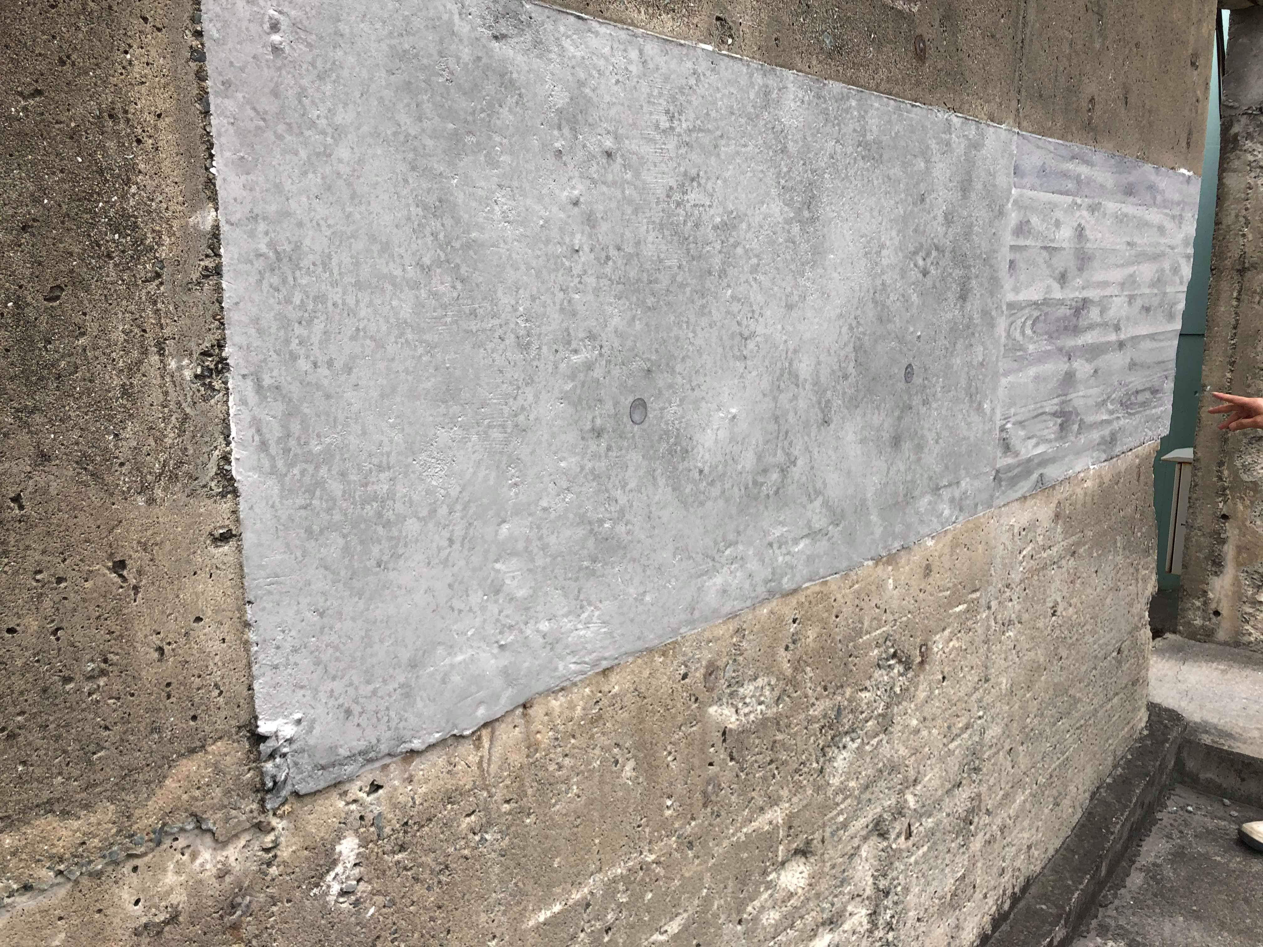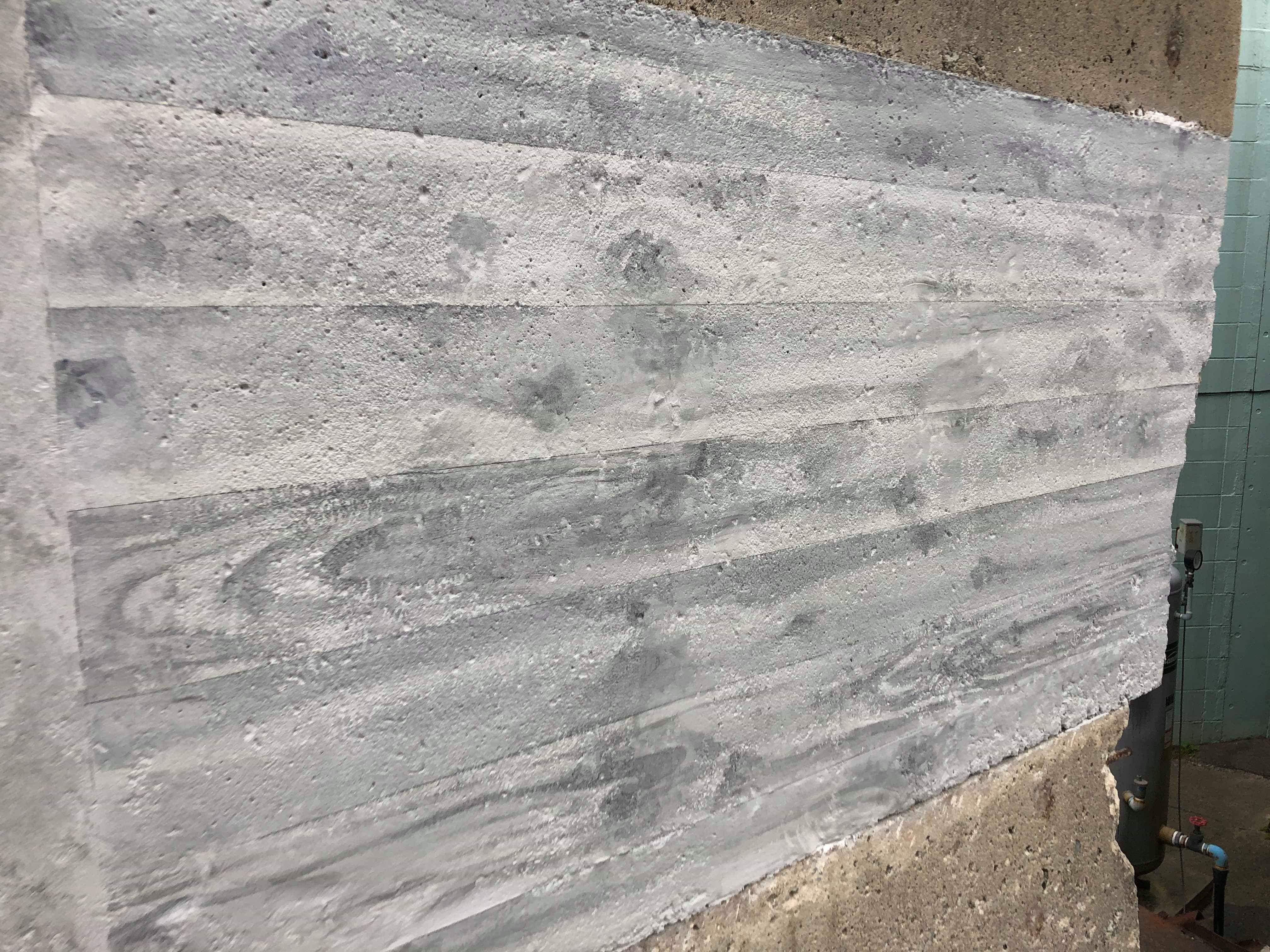 上記写真の打ち放しペイントは「規定色(灰色)のベース材」の上にパターンで打ち放しに魅せる手法。
