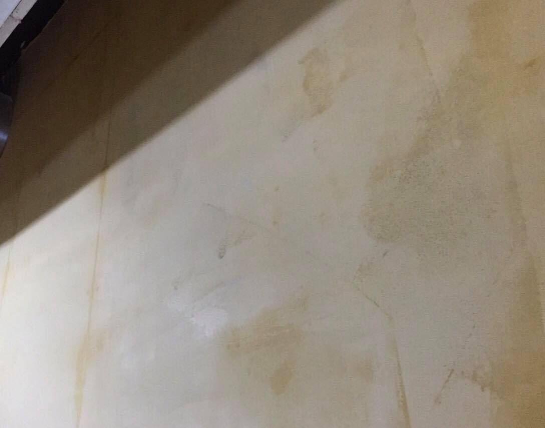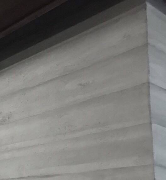 店舗改修工事で、コンクリートで造成すると重みで耐えられない垂れ壁のため、 ボードで垂れ壁を作った(1枚目の写真)。ボード下地にパテで凹凸を埋め、色合わせ仕上げを施工。施工日数は約7日、10人工。規模感が写真ではわからないかもしれないが、600,000円(10人工、人工単価45,000円、諸経費)でご満足いただいた。