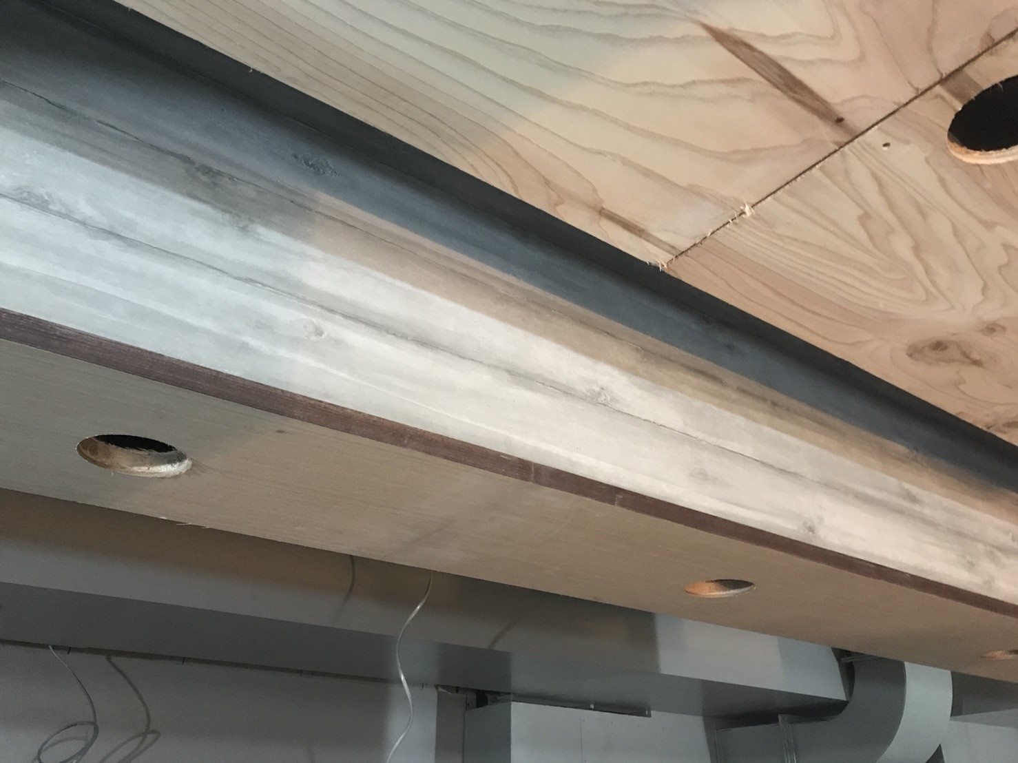 店舗内部の垂れ壁に打ち放し杉板模様を造成た。リピート案件。