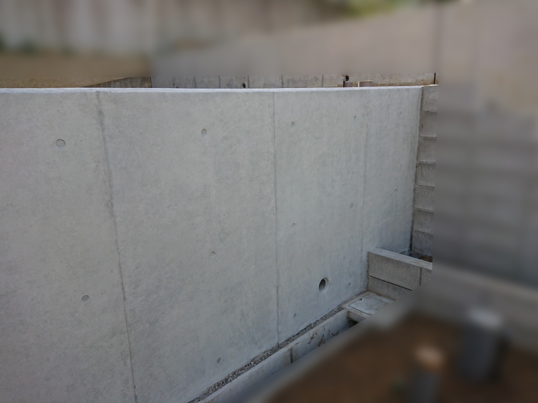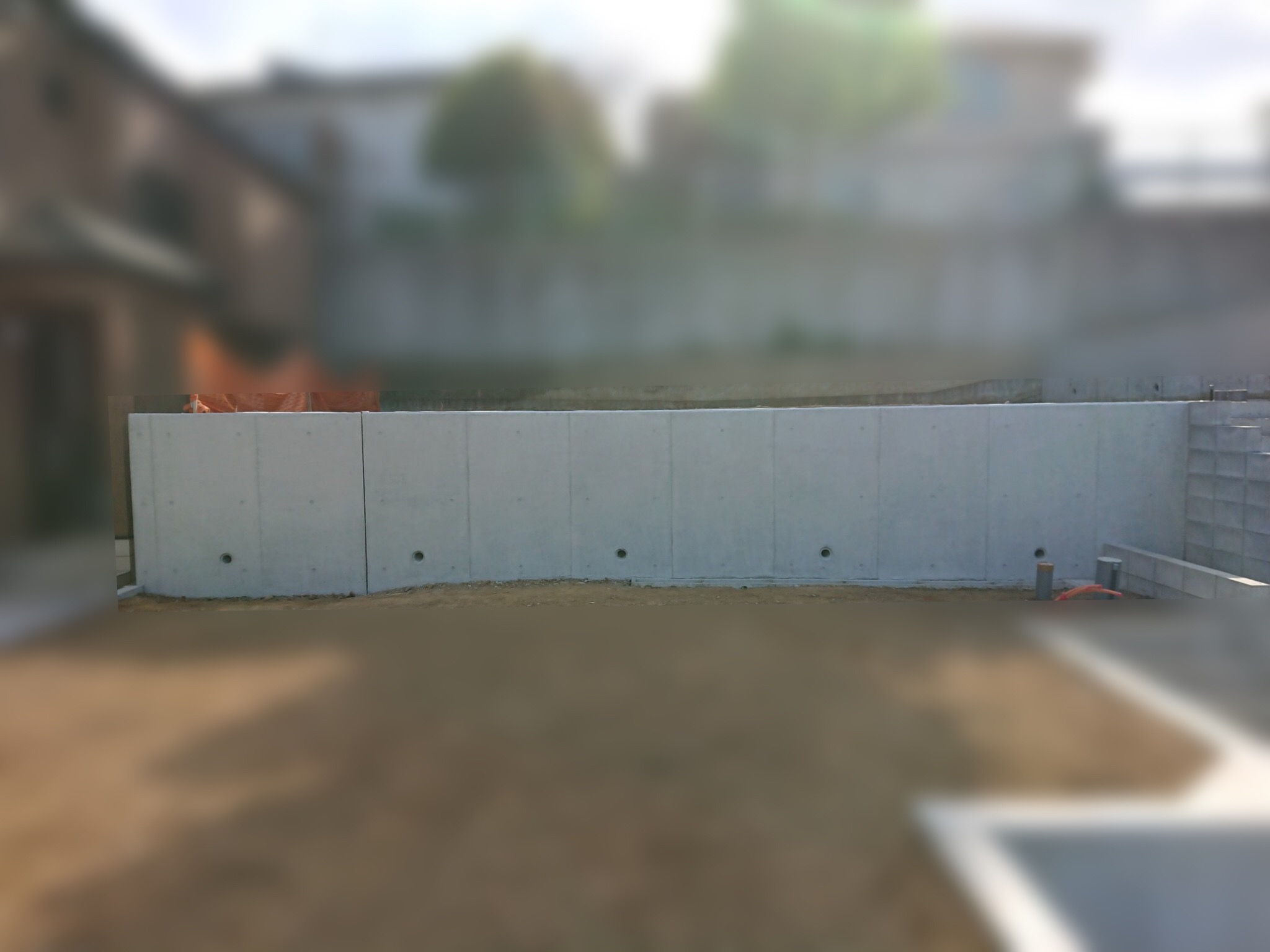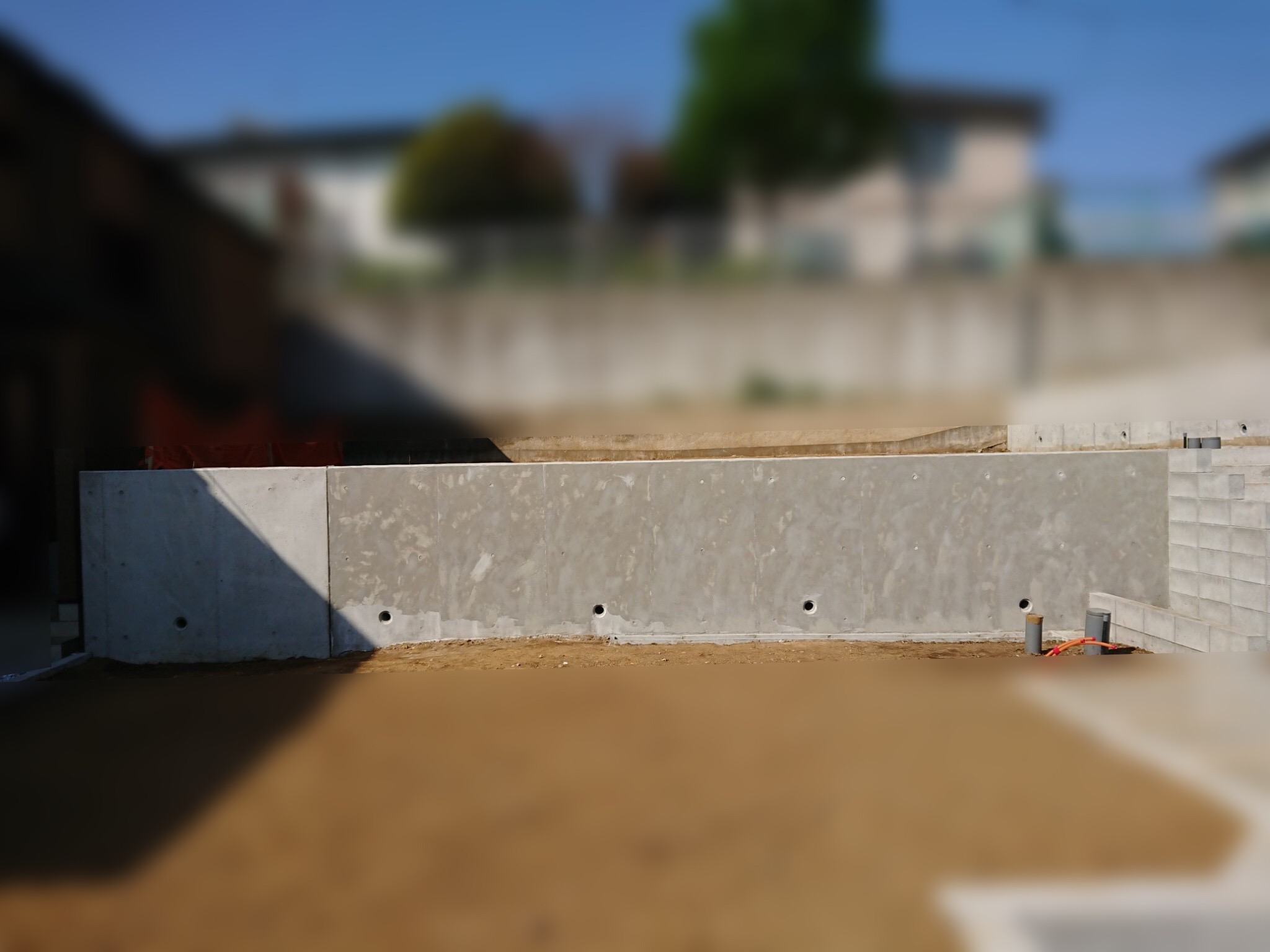 生コンポータルの実績をみたお客様から。約10万円の工事で、造成の土留擁壁(神奈川県の実績)。左官で補修したものの補修していない箇所との色の違いを心配されての施工。自然に仕上がったと喜んでもらいました