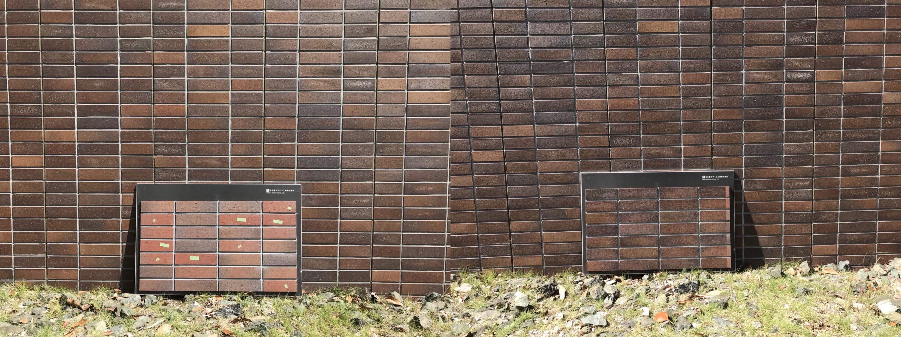※取り寄せたタイルサンプル(左)、既存外壁のタイル色合いに合わせたサンプルタイル(右)