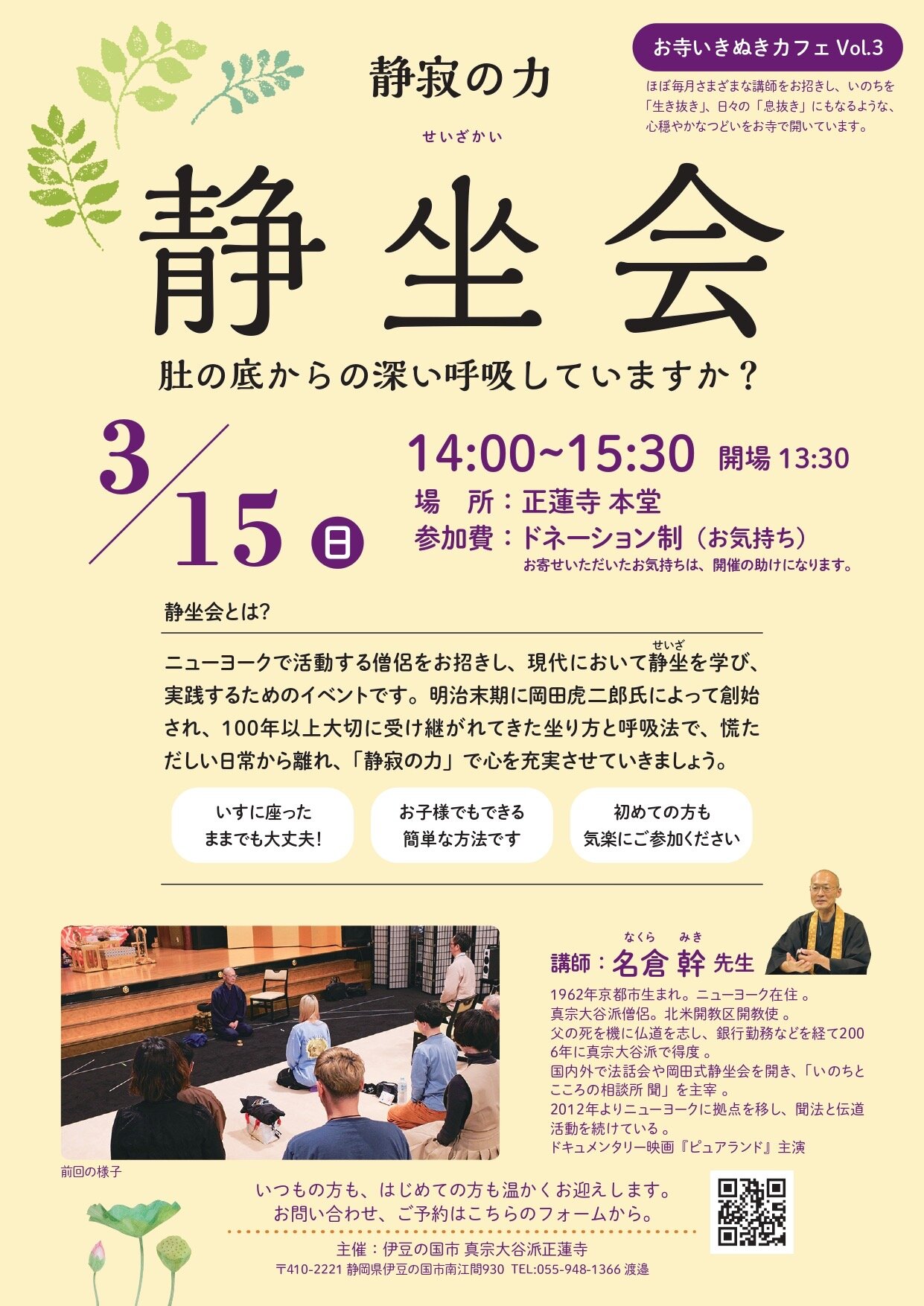 【静坐会】NYC在住の回教師(真宗大谷派)【名倉幹】再び伊豆半島を訪れ【正蓮寺】にて開催