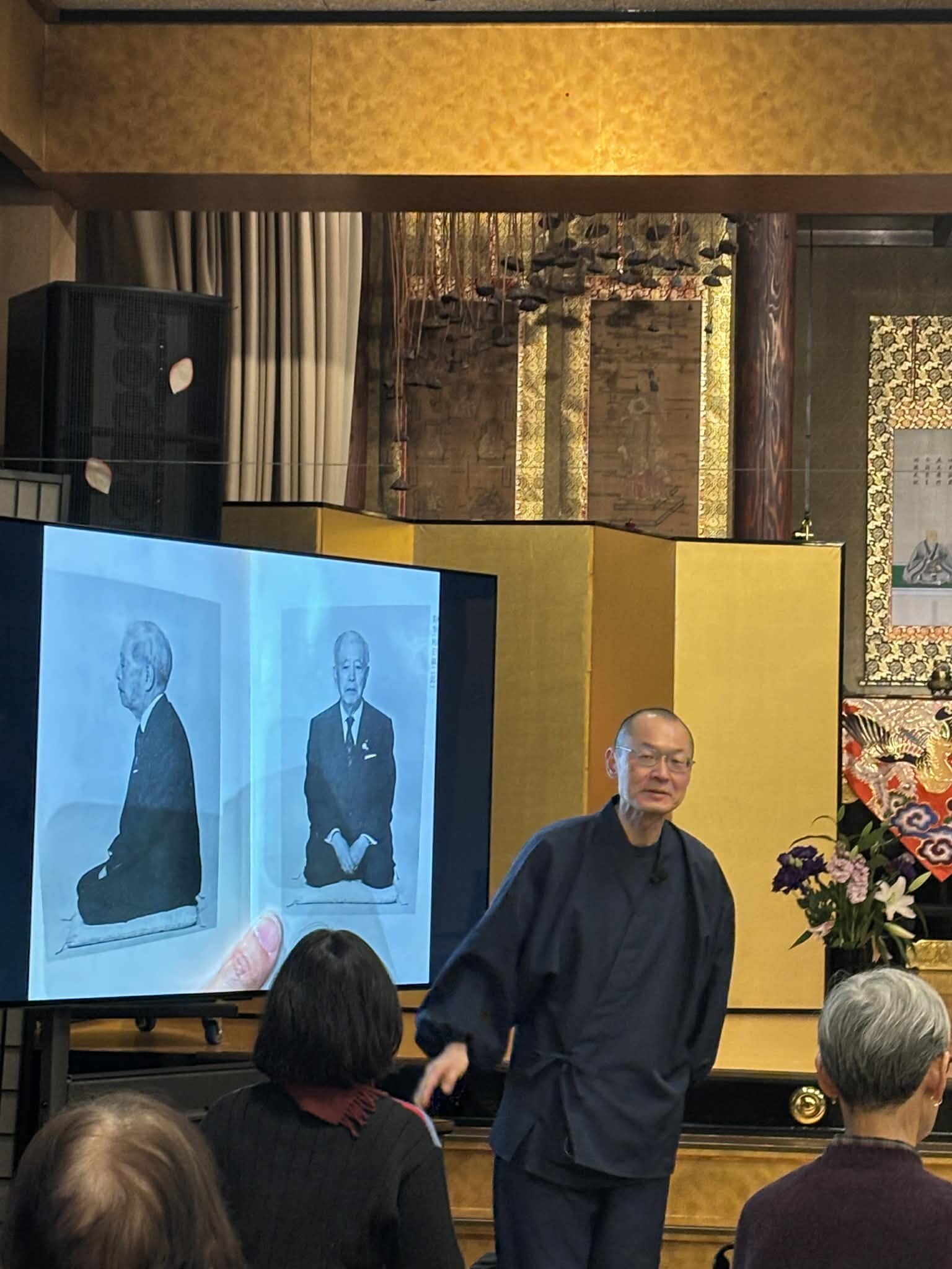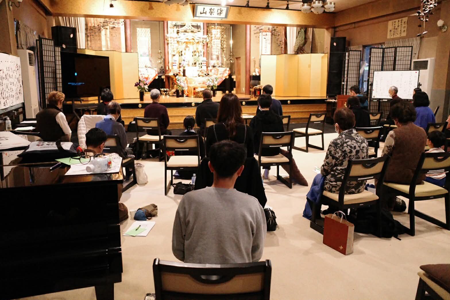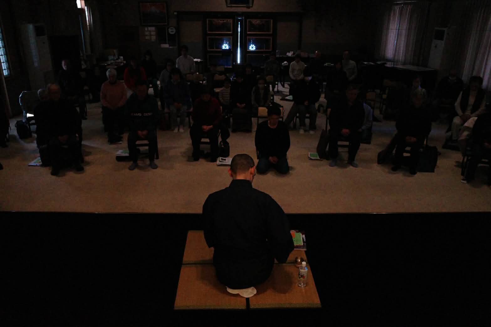 エモい写真撮影はご存じ正蓮寺住職GENJOさんによるもの。お堂は静謐に包まれました。そういえば、前回は主催をオワコンの宮本さんが務めて去年11月に正蓮寺で開催してました NYCからナマコンバレーに僧侶をお招きして菩提寺【正蓮寺】にて静坐会を開催しました
