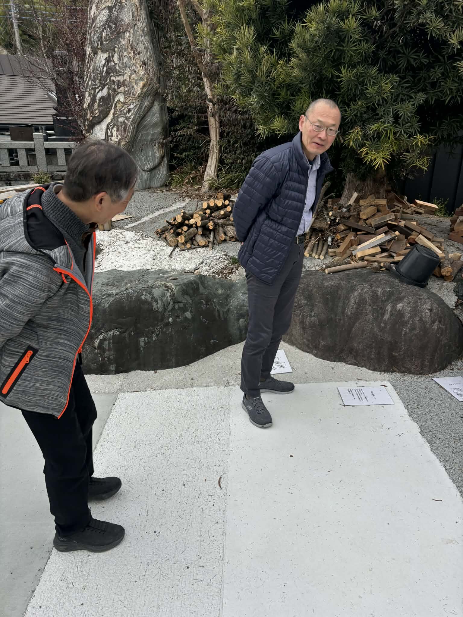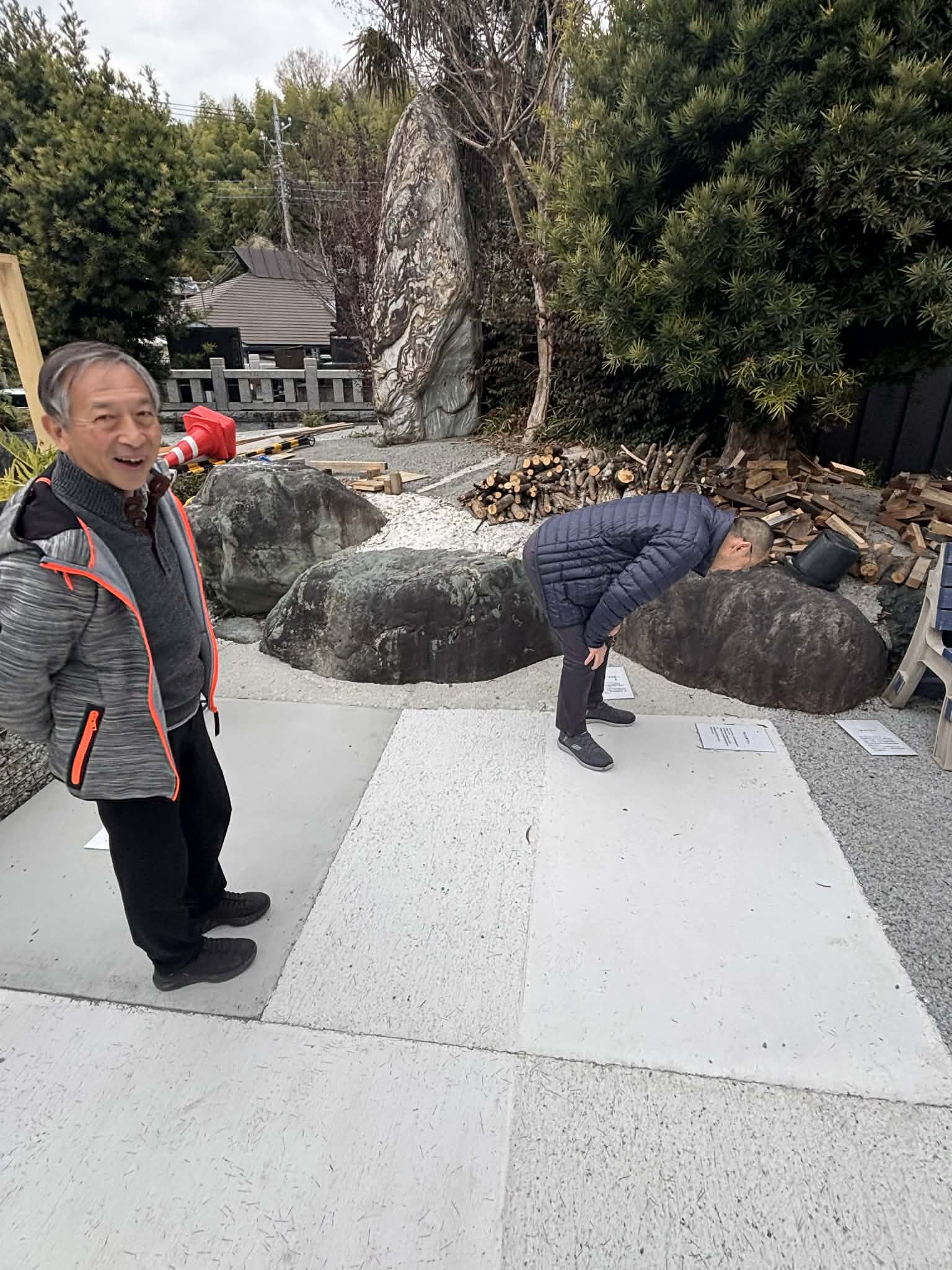 写真左は森田さんと右名倉先生お二人とも脱炭素や資源循環が実装された土間コン™︎のご説明を興味津々でお聞きくださいました